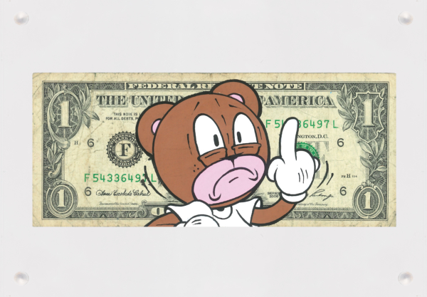 Badass Bear modèle unique sur Billet de 1 $ original présenté dans un cadre photo acrylique,
