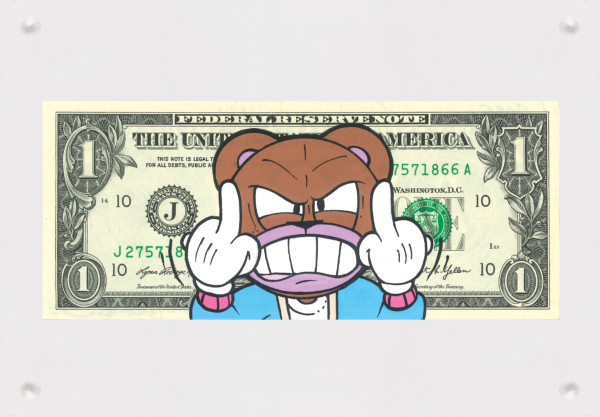 Badass Bear modèle unique sur Billet de 1 $ original présenté dans un cadre photo acrylique,