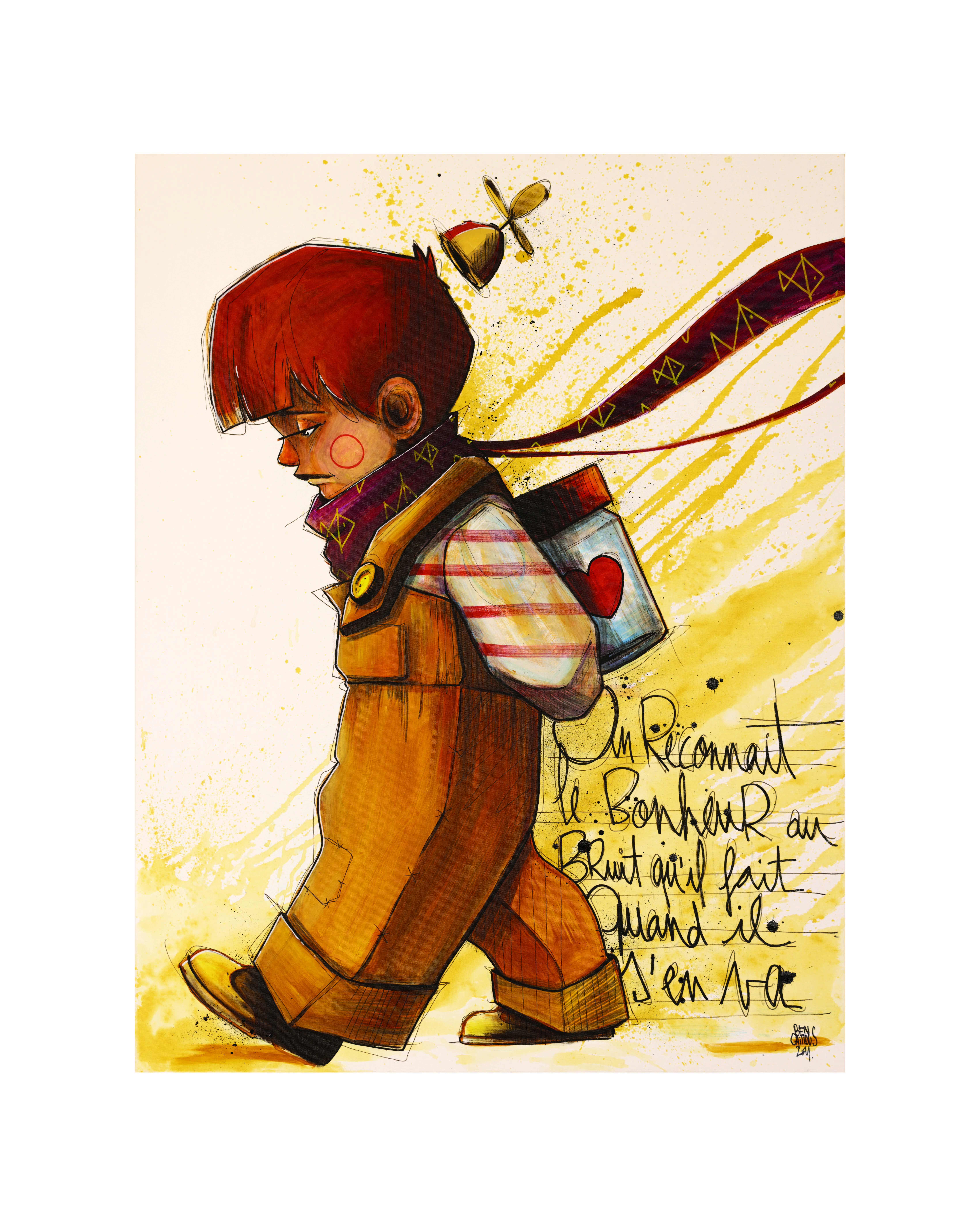 BEN CAILLOUS Sérigraphie « On reconnait le bonheur au bruit qu’il fait lorsqu’il s’en va. »
